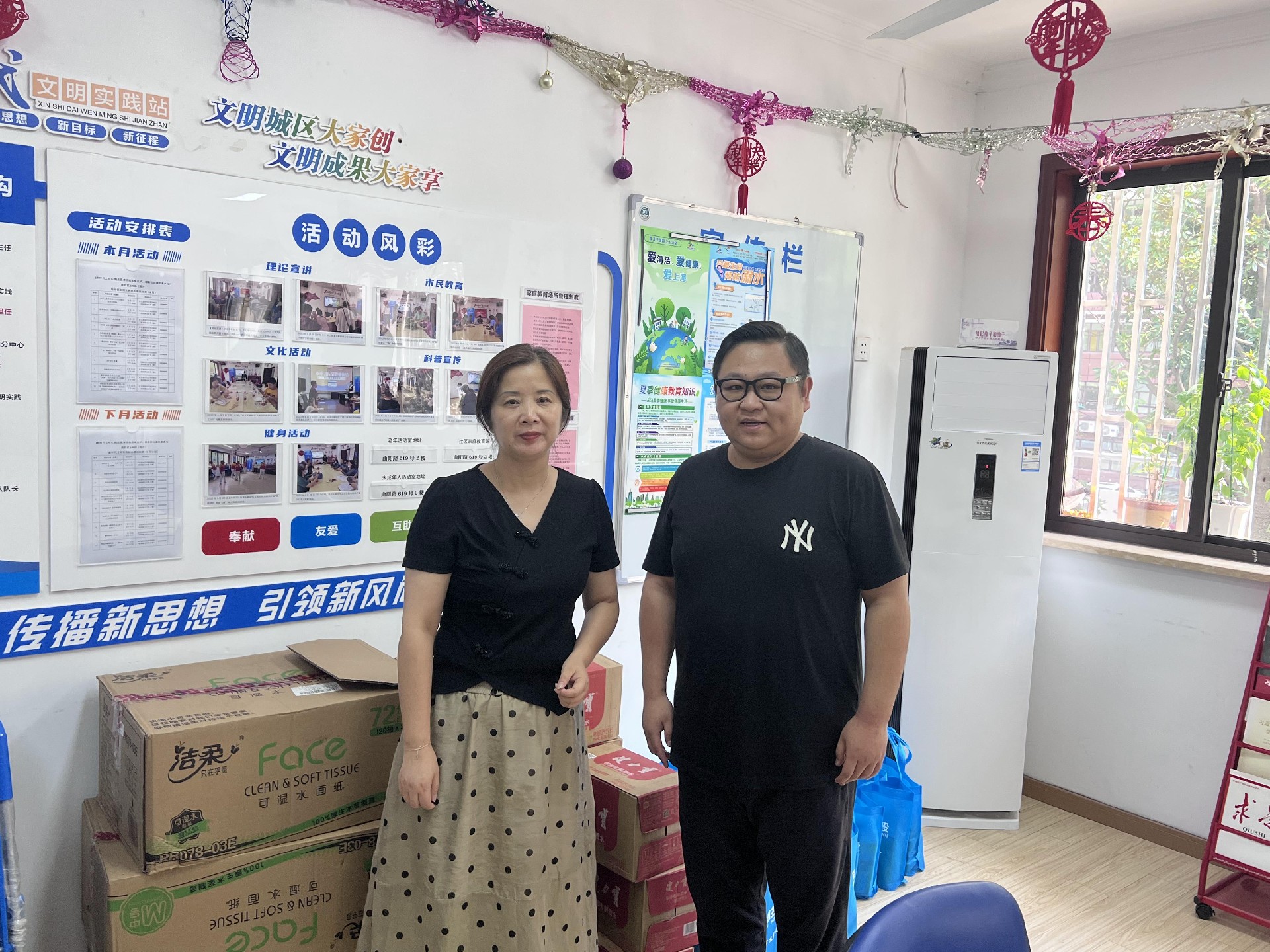 7月18日,虹口区人大代表、森信控股集团总裁王铭豪先后走进曲阳路街道赤三居委会、东五居委会、上农一居委会,为社区工作者送去夏日清凉。