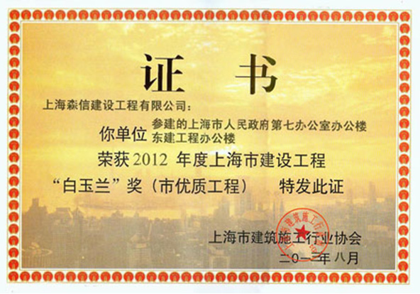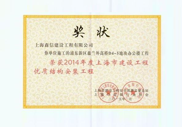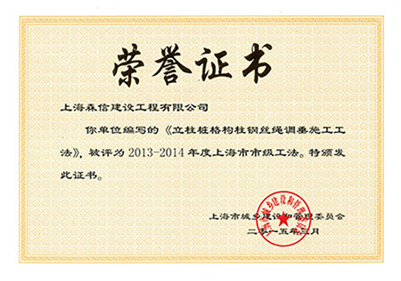2015年1月荣获“2014年度上海市重点工程实事立功竞赛优秀企业”