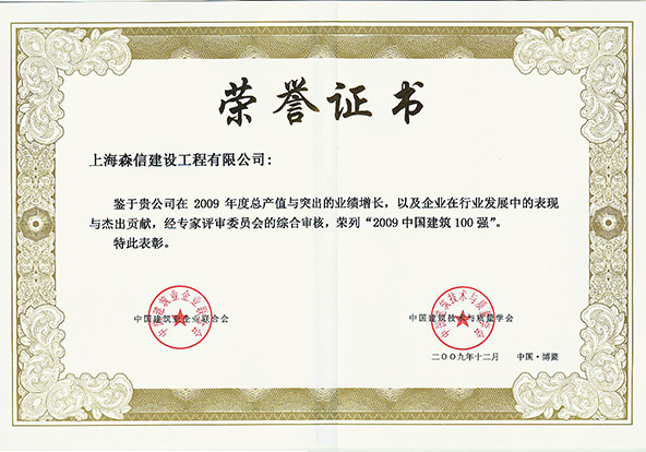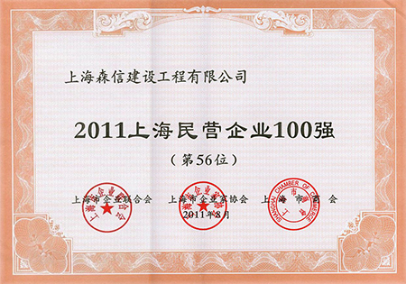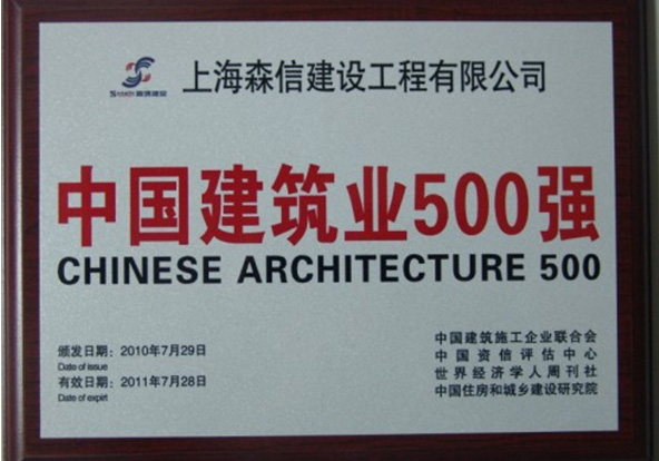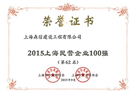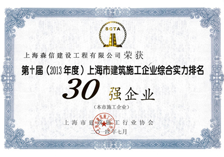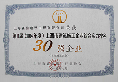 2015年8月荣获“2014年度上海市建筑施工企业综合实力排名30强企业”