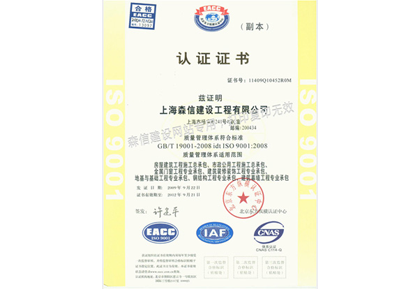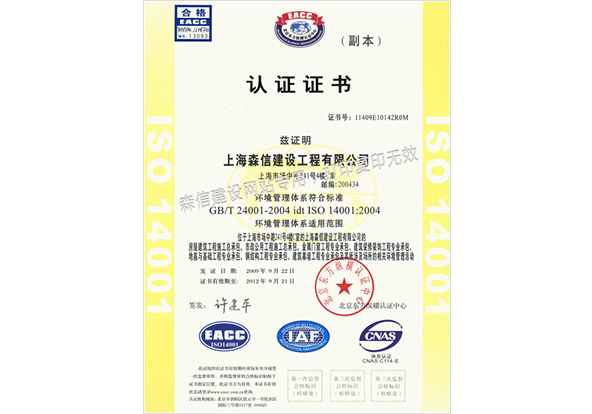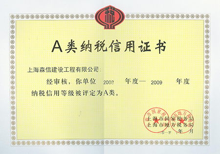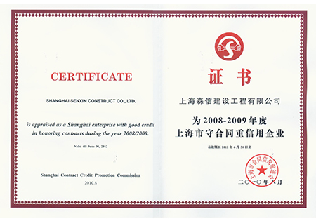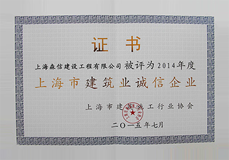 2015年8月荣获“2014年度“上海市建筑业诚信企业”