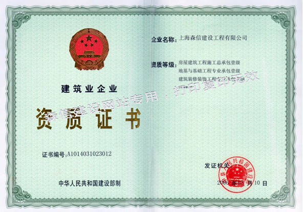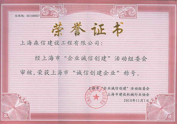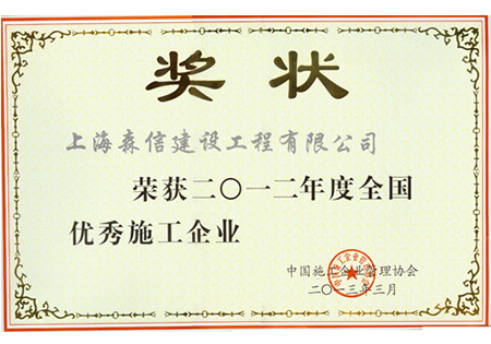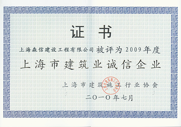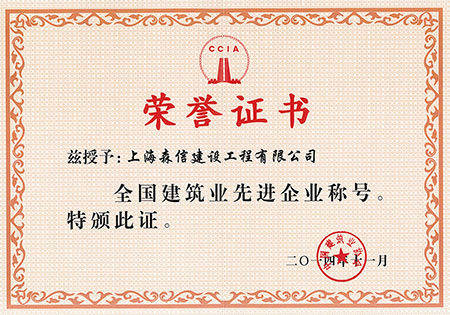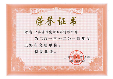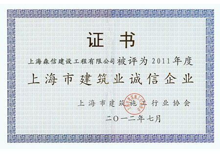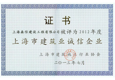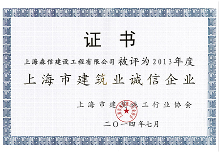 2014年8月荣获2013年度上海市建筑业诚信企业