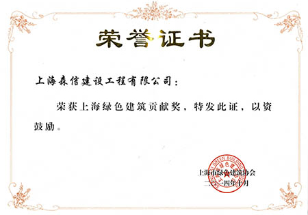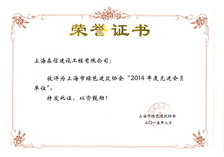 2015年3月获评上海市绿色建筑协会“2014年度先进会员单位”