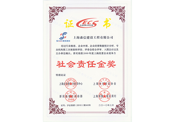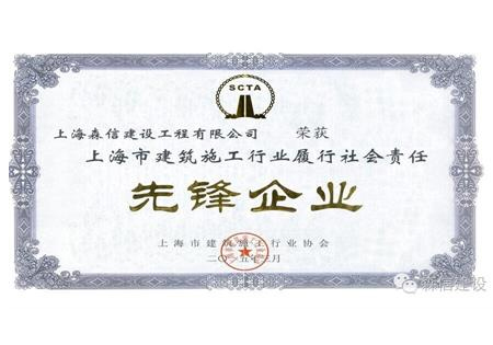 2015年3月荣获“上海市建筑施工行业履行社会责任先锋企业”