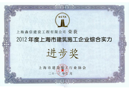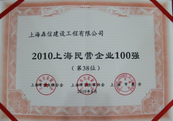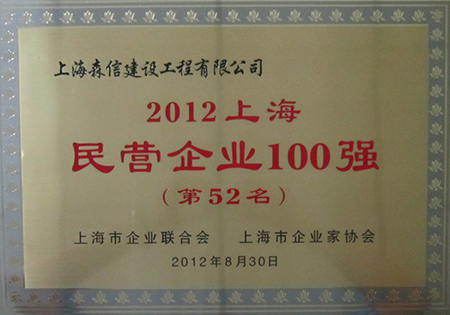 2014年8月荣获2013年度上海市建筑施工企业综合实力30强