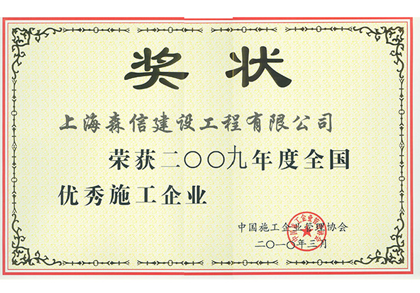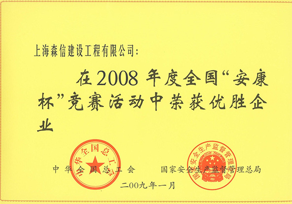 2009年1年荣获2008年度全国“安康杯”优胜企业