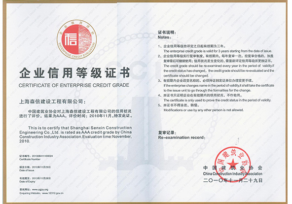 2010年11月荣获全国建筑业信用等级AAA级企业