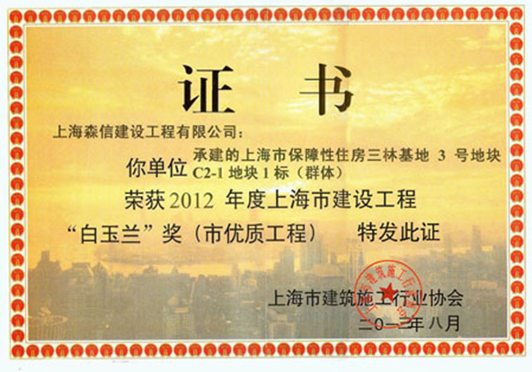 2012年8月上海市保障性住房三林基地15#楼荣获白玉兰奖