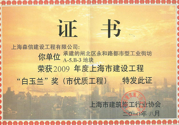 2010年8月闸北区永和路都市型工业街坊荣获上海市“白玉兰”奖