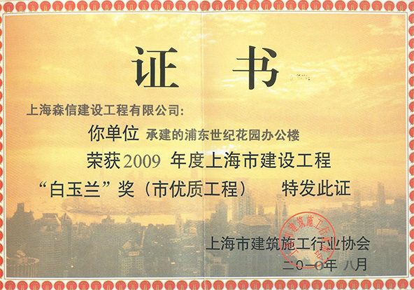 2010年8月东上海世纪花园办公楼荣获2009年度上海市“白玉兰”奖