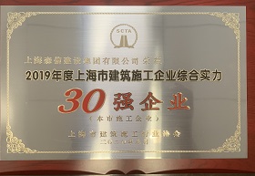 近日,经上海市建筑施工企业综合实力排名审定委员会审定,我司再度荣获2019年度上海市建筑施工企业综合实力 30强企业称号。...