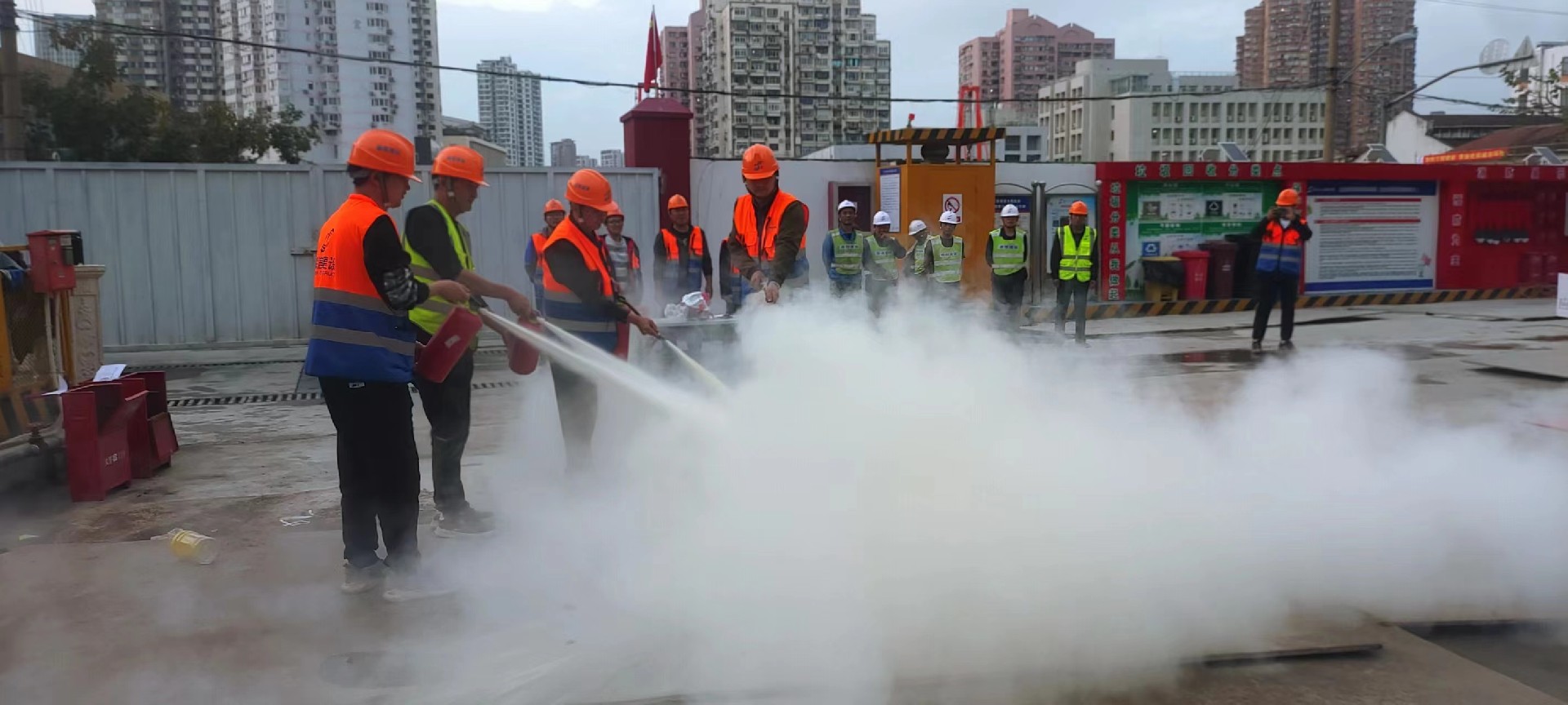 森兰国际D3-2、中西医结合医院、长沙名士豪庭等项目还根据《项目应急处置预案》组织应急小组及施工班组进行消防应急实战演练,指导施工人员正确使用消防水带、灭火器,对演练活动中存在的问题进行统一讲评,确保所有人正确使用消防设备设施。