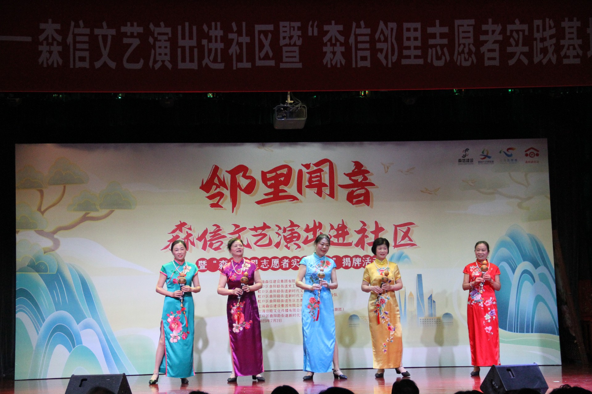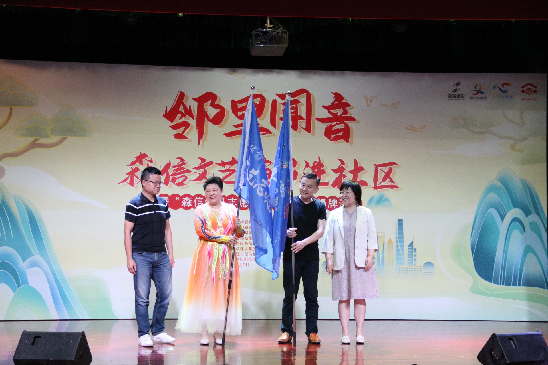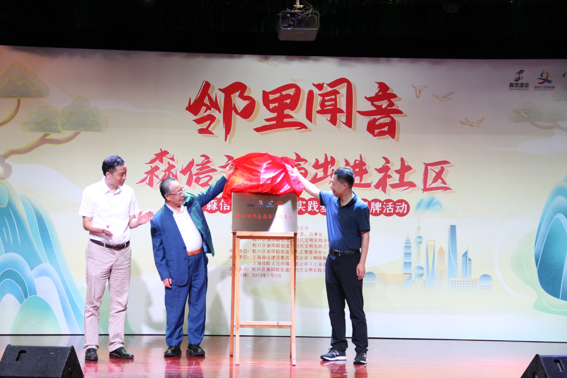 7月2日,“邻里闻音”--森信文艺演出进社区暨“森信邻里志愿者实践基地”揭牌仪式在曲阳社区文化活动中心一楼隆重举行。
