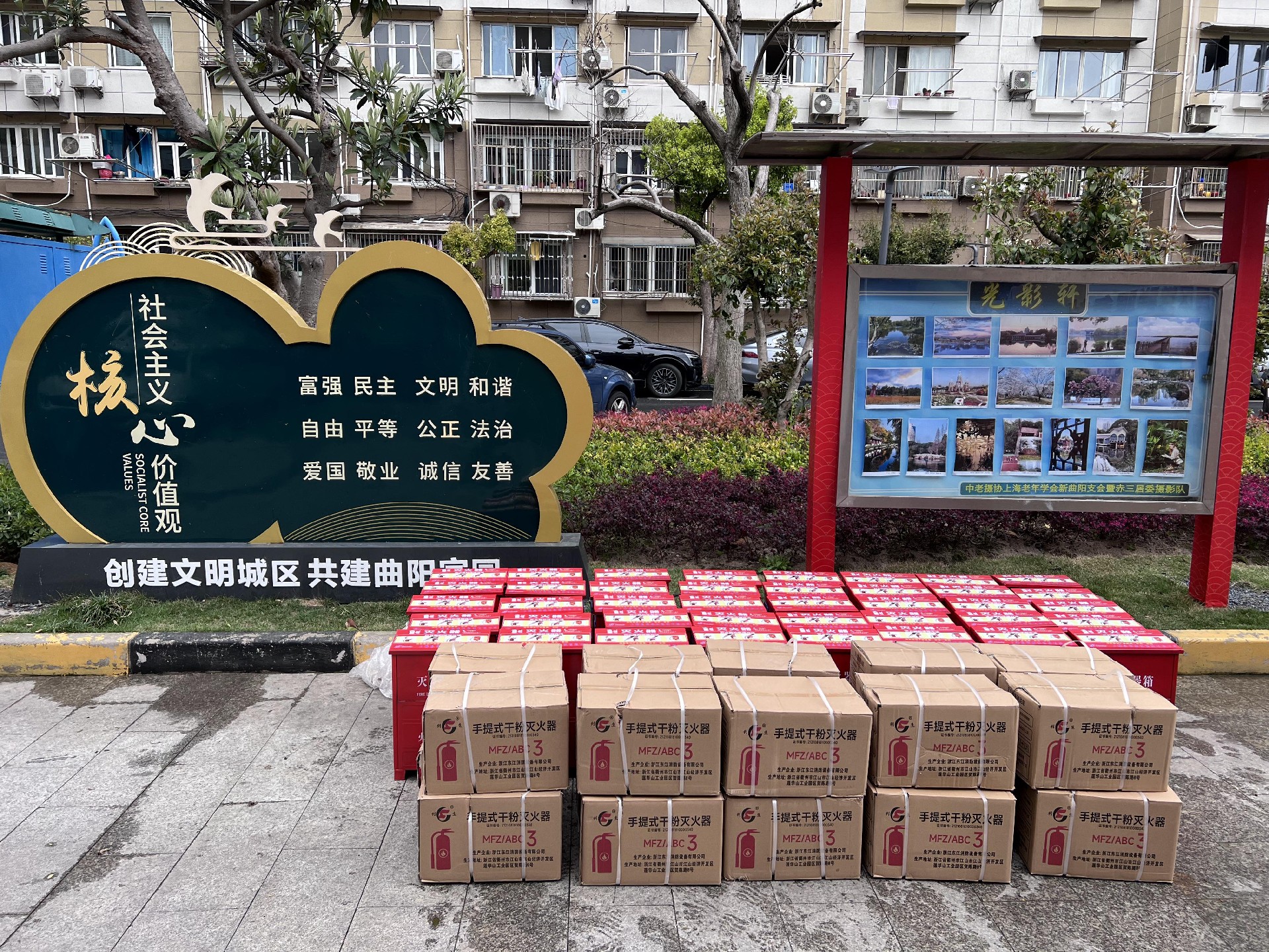 4月2日上午,8688体育网向曲阳路街道赤三居民区捐赠80具灭火器及40个配套器材箱,以实际行动为社区消防安全建设提供坚强支撑。