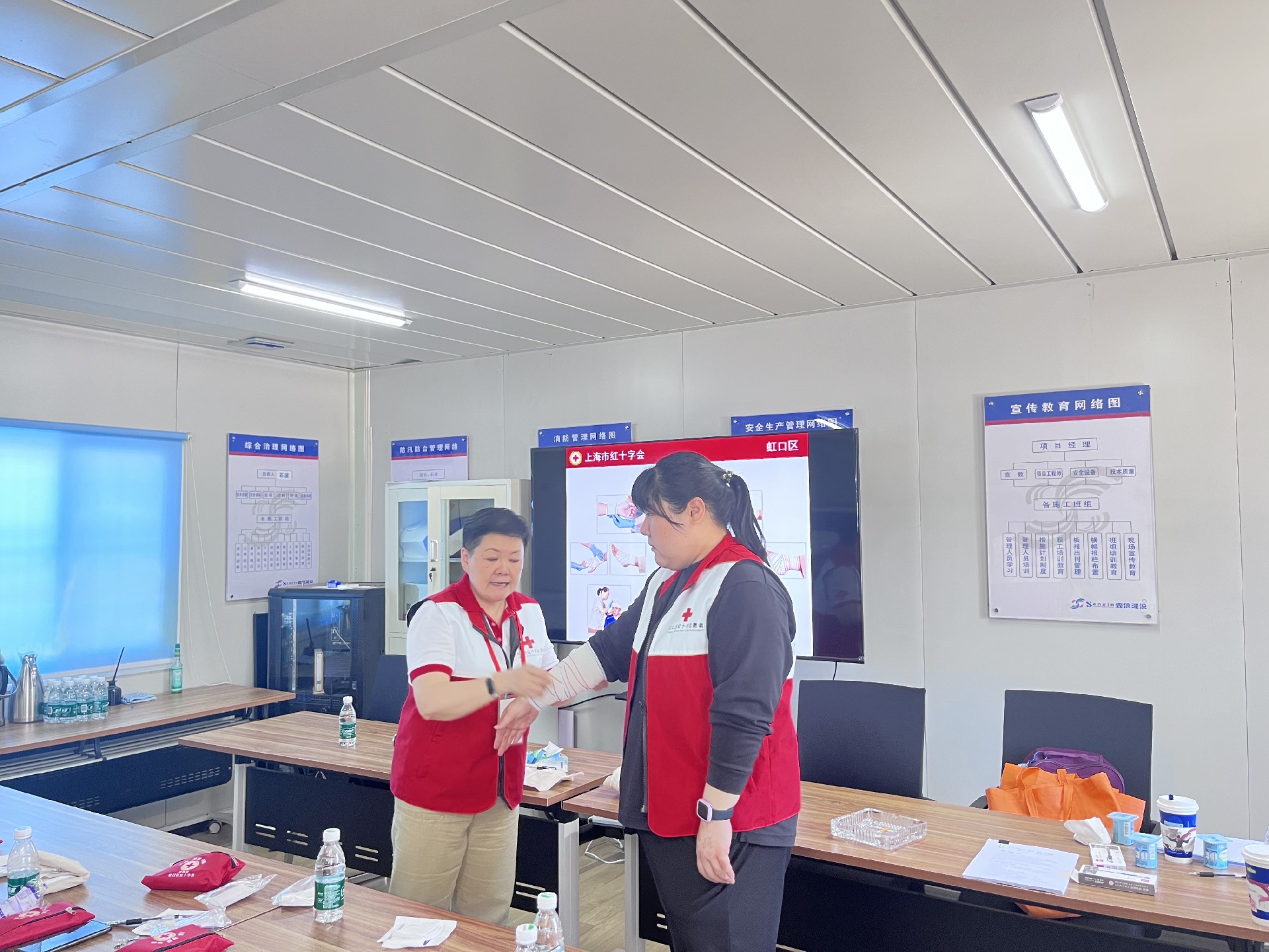 5月17日,8688体育网积极响应2024年上海市为民办实事项目的推进落实工作,特邀曲阳路街道红十字会老师到117新建学校项目进行“8万名持证应急救护员”培训活动。 活动旨在普及应急救护知识和技能,提高应对突发事件的自救能力,有效保护生命和健康,全体项目人员积极参与,现场气氛热烈。